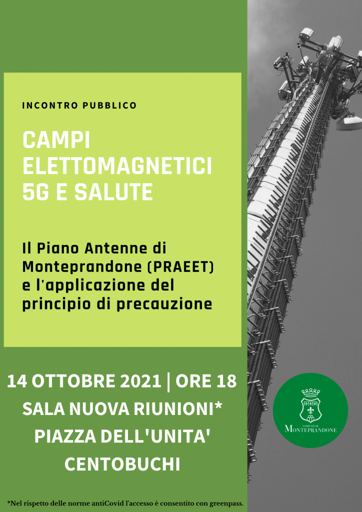 Con deliberazioni n. 75 e 77 del 27 dicembre 2019, il Consiglio Comunale di Monteprandone ha approvato all’unanimità due delibere in tema ambientale, a tutela della salute pubblica in cui dice “no” alla sperimentazione della tecnologia 5G su tutto il territorio comunale e fornisce nuove regole per l’installazione delle antenne per la telefonia mobile.