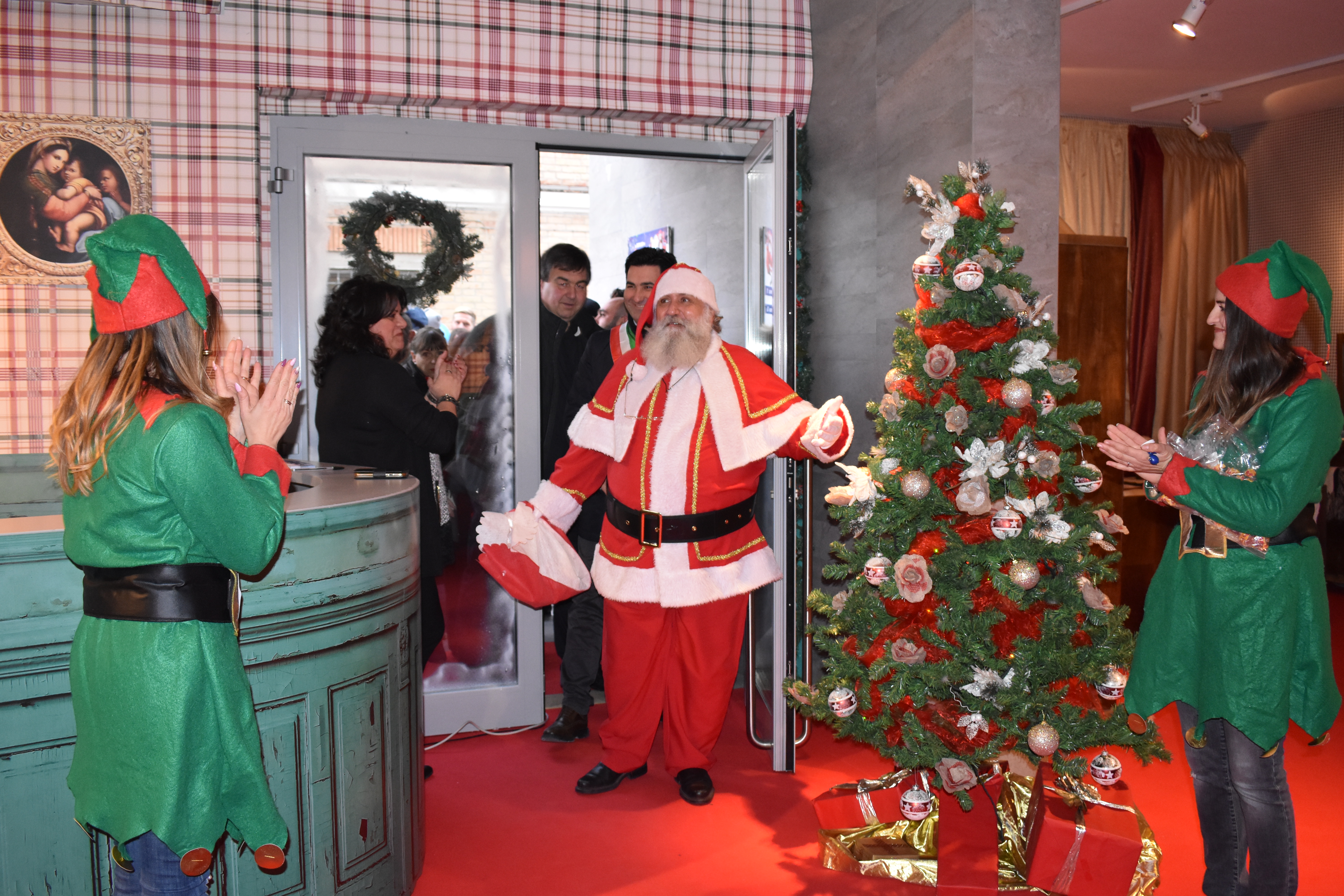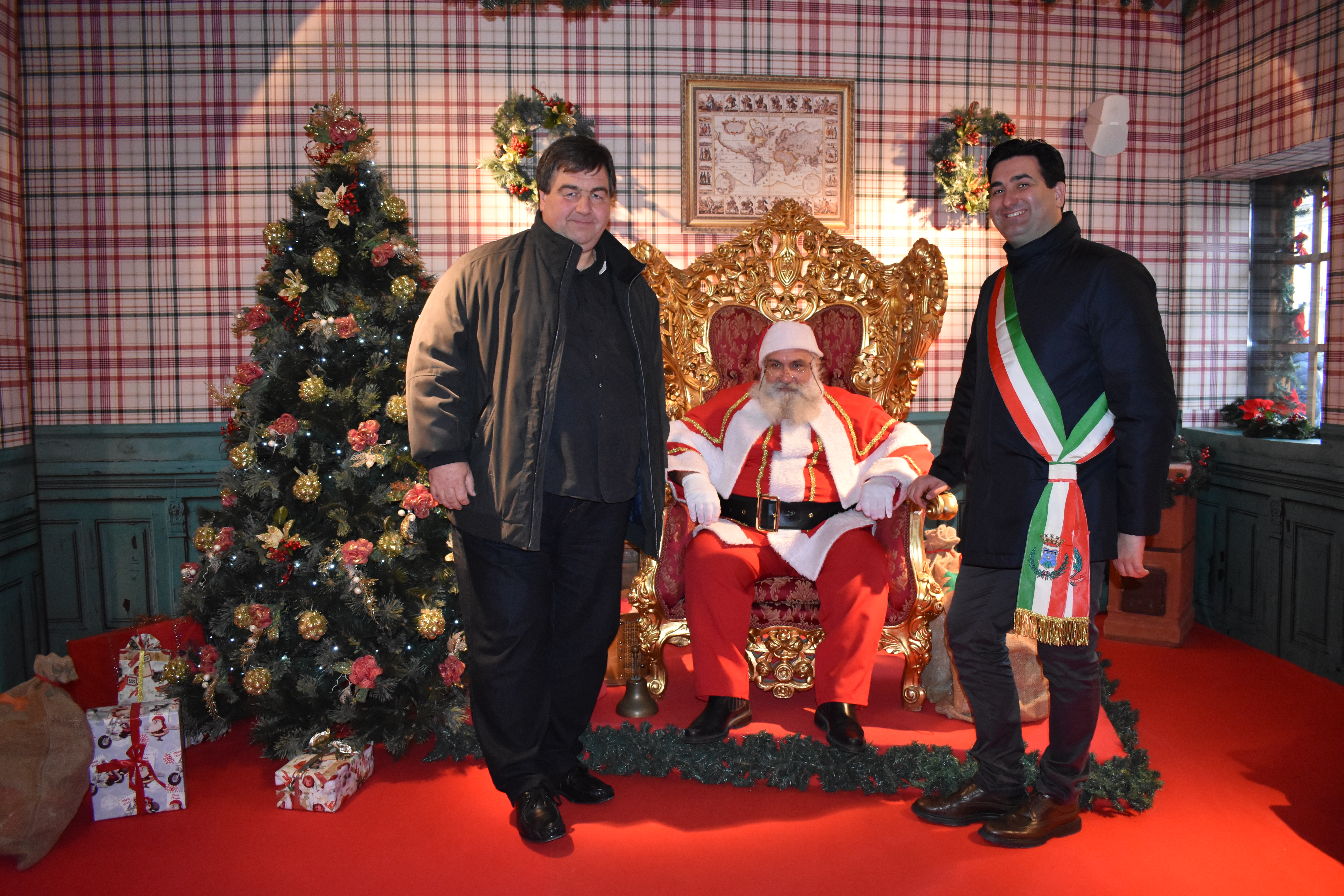 Dopo aver distribuito caramelle, il vecchio dalla barba bianca ha tagliato il nastro e preso possesso della sua casa dove è allestita la sala del trono, la camera da letto e il giardino di Babbo Natale.