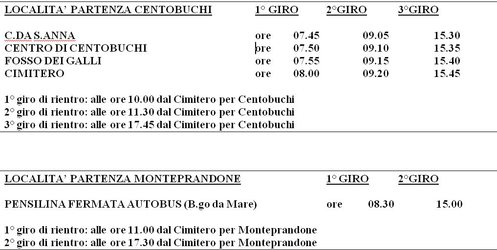 Nelle giornate di mercoledì 1 e giovedì 2 novembre, l'Amministrazione comunale mette a disposizione della cittadinanza un servizio di bus navetta gratuito per il cimitero.