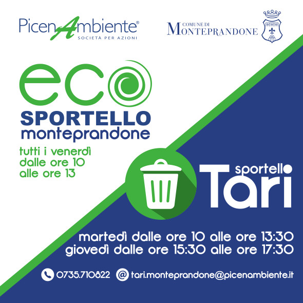 Ricordiamo inoltre che il martedì dalle 10 alle 13:30 e il giovedì dalle 15:30 alle 17:30, è operativo lo sportello Tari che gestisce le attività di contatto e di relazione con il contribuente. Per informazioni 0735.710822 oppure email tari.monteprandone@picenambiente.it.