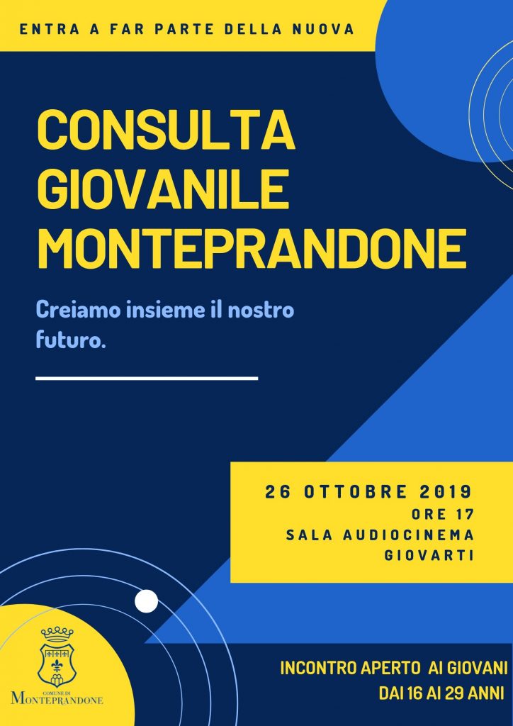 Costituita nel 2010, la Consulta Giovanile è un’istituzione democratica autonoma senza fini di lucro, aperta a tutti i giovani che mostrano interesse e partecipazione alla vita sociale, politica, associativa ed amministrativa monteprandonese.
