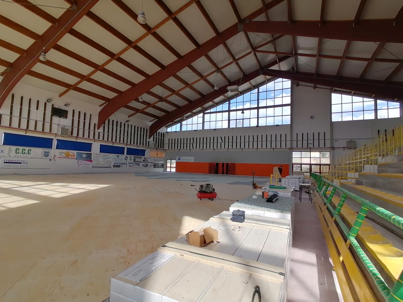 Sono giunti ad una fase cruciale i lavori di manutenzione straordinaria del Palazzetto dello Sport situato in via Colle Gioioso a Monteprandone. In questi giorni, infatti, si sta effettuando la posa del parquet.