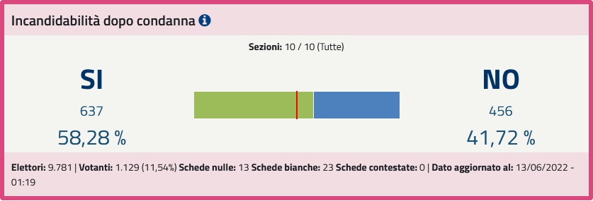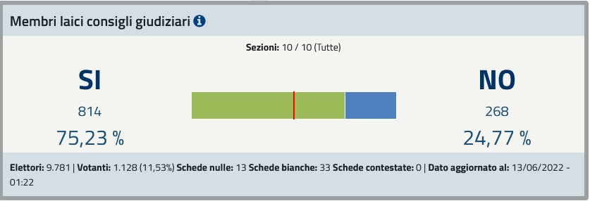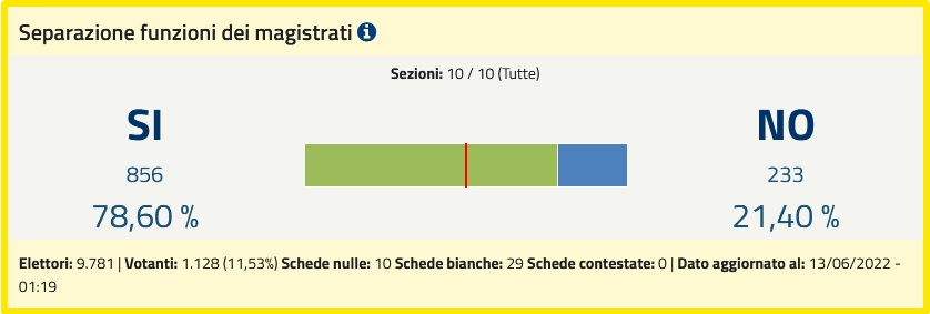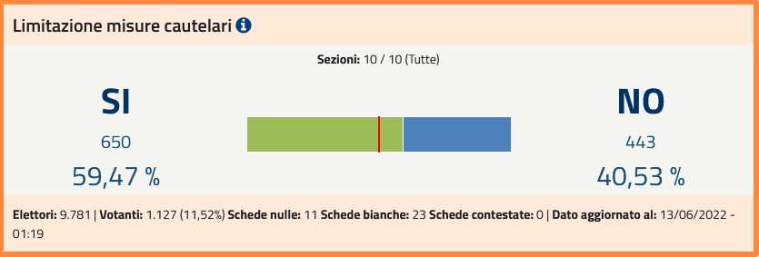 Di seguito i risultati del Referendum 2022 nel Comune di Monteprandone, suddivisi per quesito .