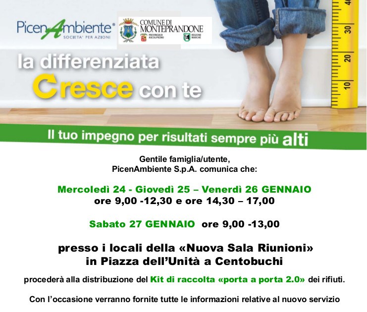 Da giovedì 25 a sabato 27 gennaio la PicenAmbiente consegna il kit dei mastelli e offre informazioni per effettuare il nuovo metodo di raccolta a tutti i cittadini residenti nella zona Sud Salaria.