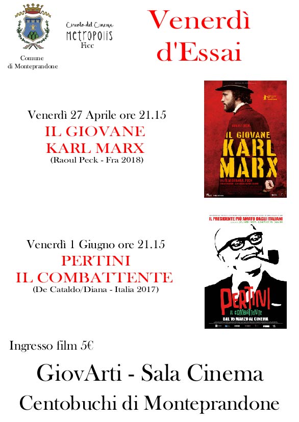 Parte “I Venerdì d'essai” una mini rassegna di cinema d'essai organizzata dal Circolo del Cinema Metropolis affiliato alla Federazione Italiana Circoli del Cinema (Ficc) con il patrocinio del Comune di Monteprandone, nelle sala audiocinema del Centro GiovArti in viale De Gasperi, 235 a Centobuchi.