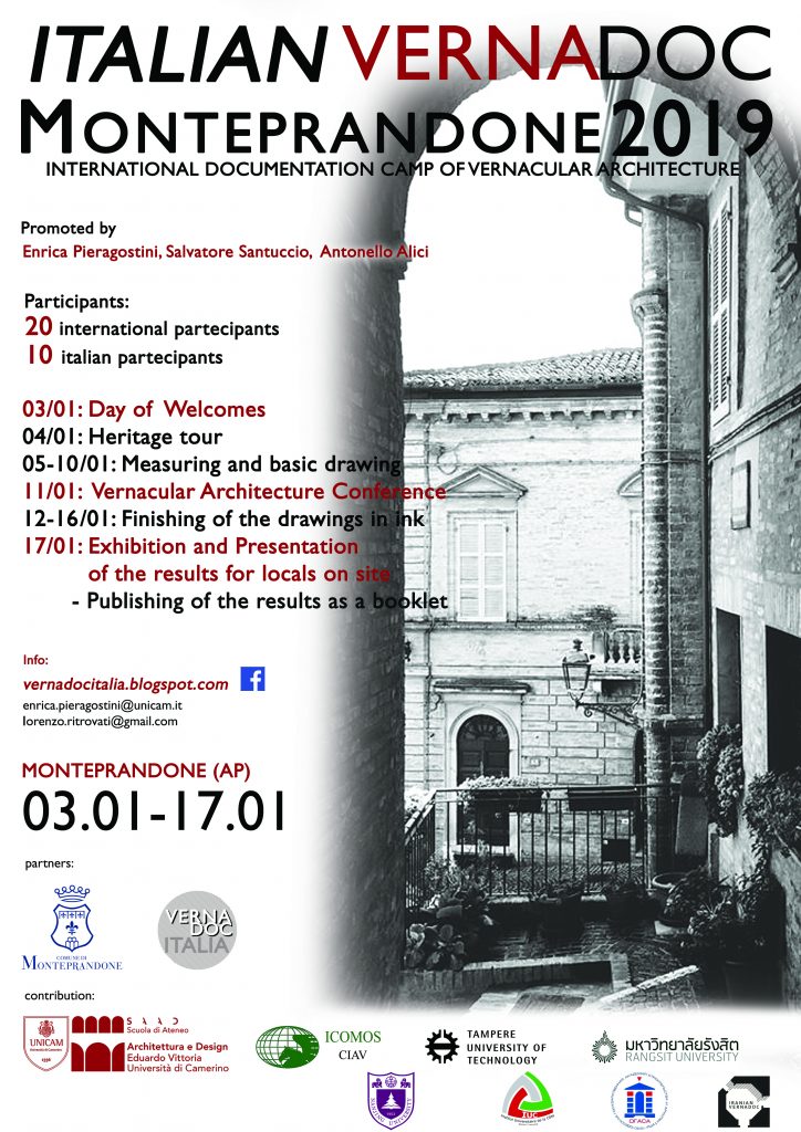 Nell’ambito della partnership tra Comune di Monteprandone e Scuola di Ateneo Architettura e Design (SAAD) “Eduardo Vittoria” dell'Università di Camerino volta a dare lustro e mantenere le tradizioni costruttive vernacolari del Centro Storico di Monteprandone, giovedì 3 gennaio parte “Italian VernaDoc 2019”.