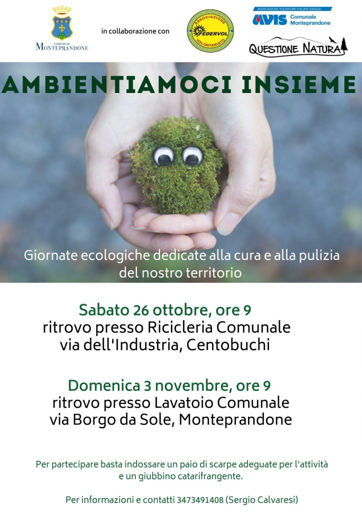 “Ambientiamoci insieme” è un’iniziativa dedicata alla cura e alla pulizia del territorio, ideata dal Comune di Monteprandone e resa possibile grazie alla collaborazione dell’associazione di Protezione civile Federvol, dell’Avis Monteprandone e di Questione Natura associazione impegnata nella tutela ambientale.