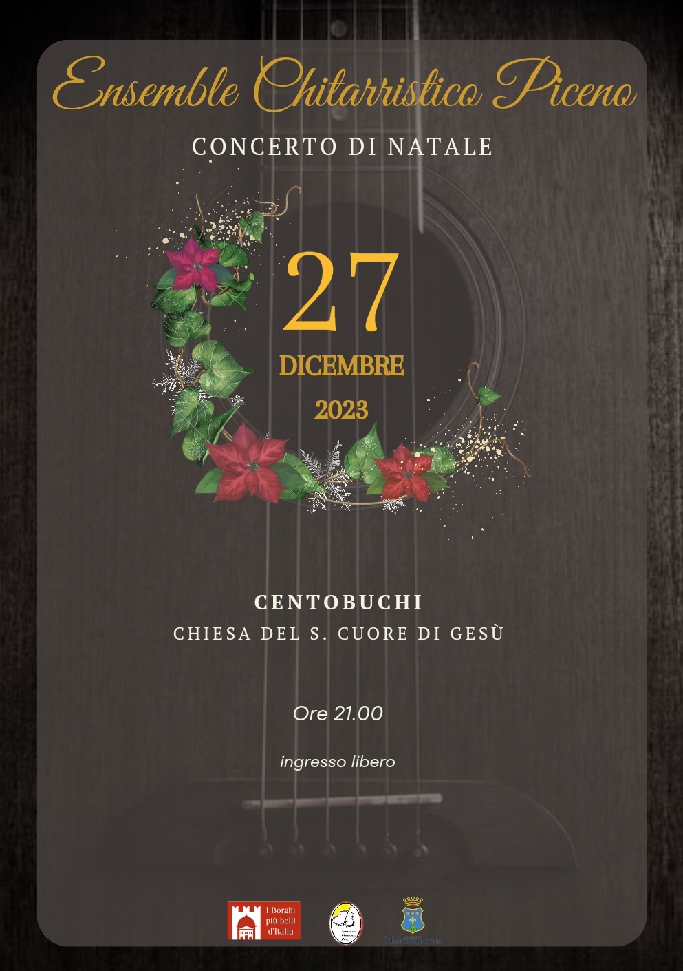 L’associazione Chitarristica Picena, con il patrocinio del Comune di Monteprandone, organizza il Concerto di Natale dell’Ensemble Chitarristico Piceno. Lo spettacolo musicale si terrà mercoledì 27 dicembre, presso la chiesa del Sacro Cuore di Gesù di Centobuchi.