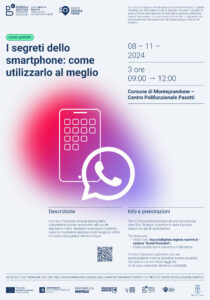 Il corso è finalizzato all’acquisizione delle competenze basilari necessarie nell’uso dei dispositivi mobili. Mediante esercitazioni pratiche saranno mostrate le applicazioni di maggiore utilità e l’utente sarà guidato nel loro utilizzo.