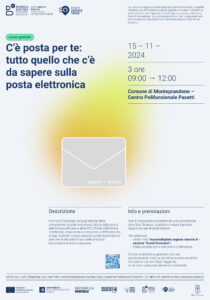Il corso è finalizzato all’acquisizione delle competenze basilari necessarie all’uso della posta elettronica ordinaria e della PEC (Posta Elettronica Certificata), imparando a conoscere la differenza tra le due. Durante il corso saranno svolte esercitazioni pratiche finalizzate all’uso delle principali funzionalità di invio e ricezione.