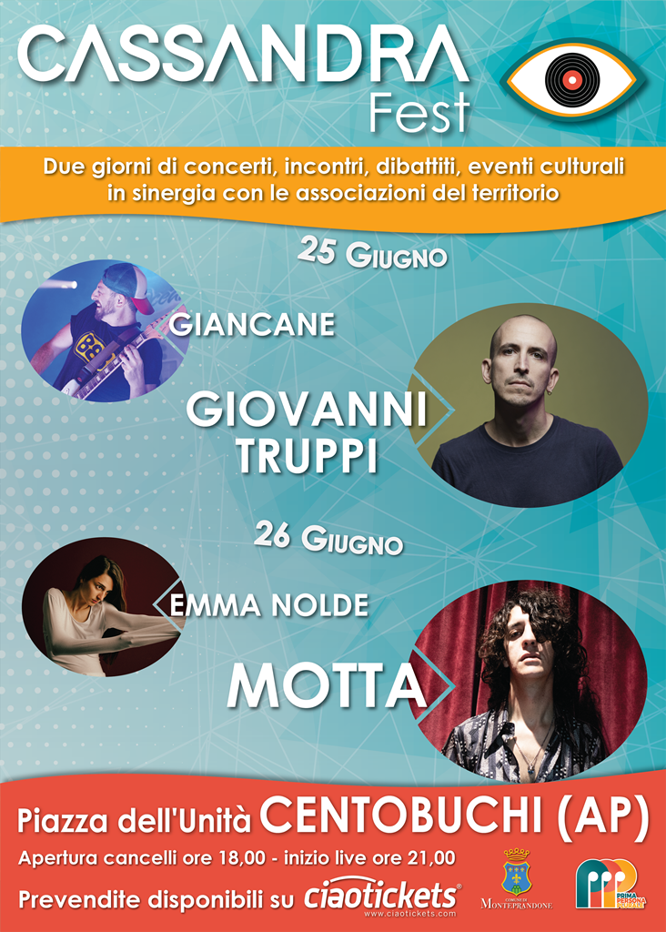 Cassandra Fest è un festival culturale organizzato dall’associazione Prima Persona Plurale con il patrocinio e il contributo del Comune di Monteprandone. La manifestazione si terrà sabato 25 e domenica 26 giugno 2022 con ricco programma di eventi realizzato grazie alla sinergia tra le realtà culturali del territorio.