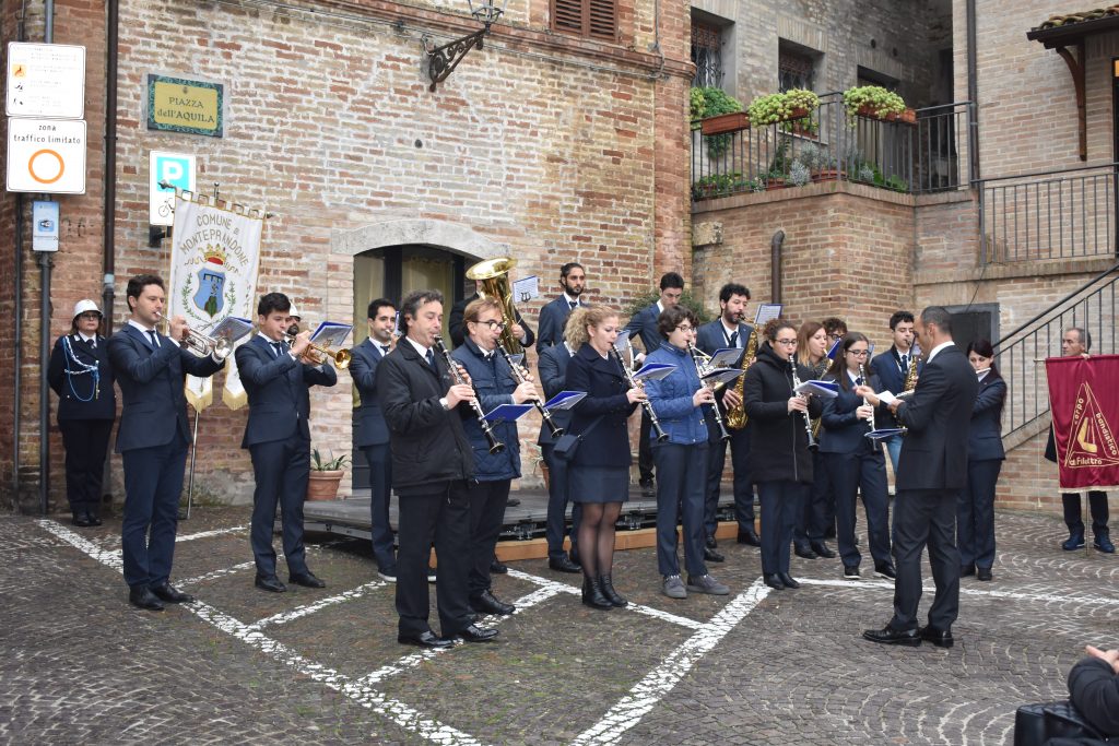 La cerimonia ha avuto inizio con l’esecuzione dell’Inno di Mameli da parte del corpo bandistico “Città di Filottrano” che ha poi eseguito diversi brani per celebrare la solennità del giorno tra i quali il brano “La leggenda del Piave” una delle più celebri canzoni patriottiche della Prima Guerra Mondiale.