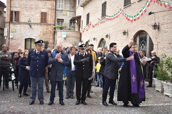 Dopo la solenne benedizione impartita da don Alfonso Rosati parroco della Chiesa del Sacro Cuore, la cerimonia si è conclusa con l’omaggio a coloro che hanno dato la vita per l'Italia attraverso la deposizione della corona d’alloro sul monumento ai caduti presente sotto il Palazzo Comunale.