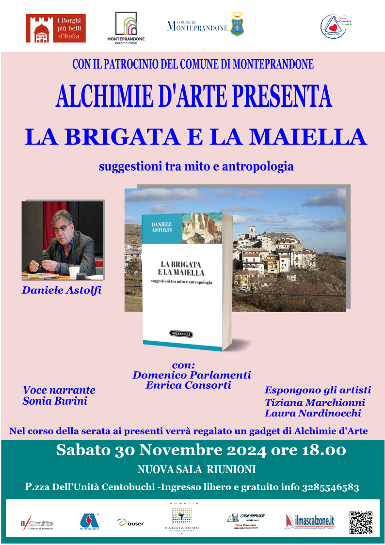 Per la rassegna storica, Alchimie d’Arte presenta il nuovo libro di Daniele Astolfi . “La brigata e la Maiella suggestioni tra mito e antropologia” Ediz. Solfanelli editore.
