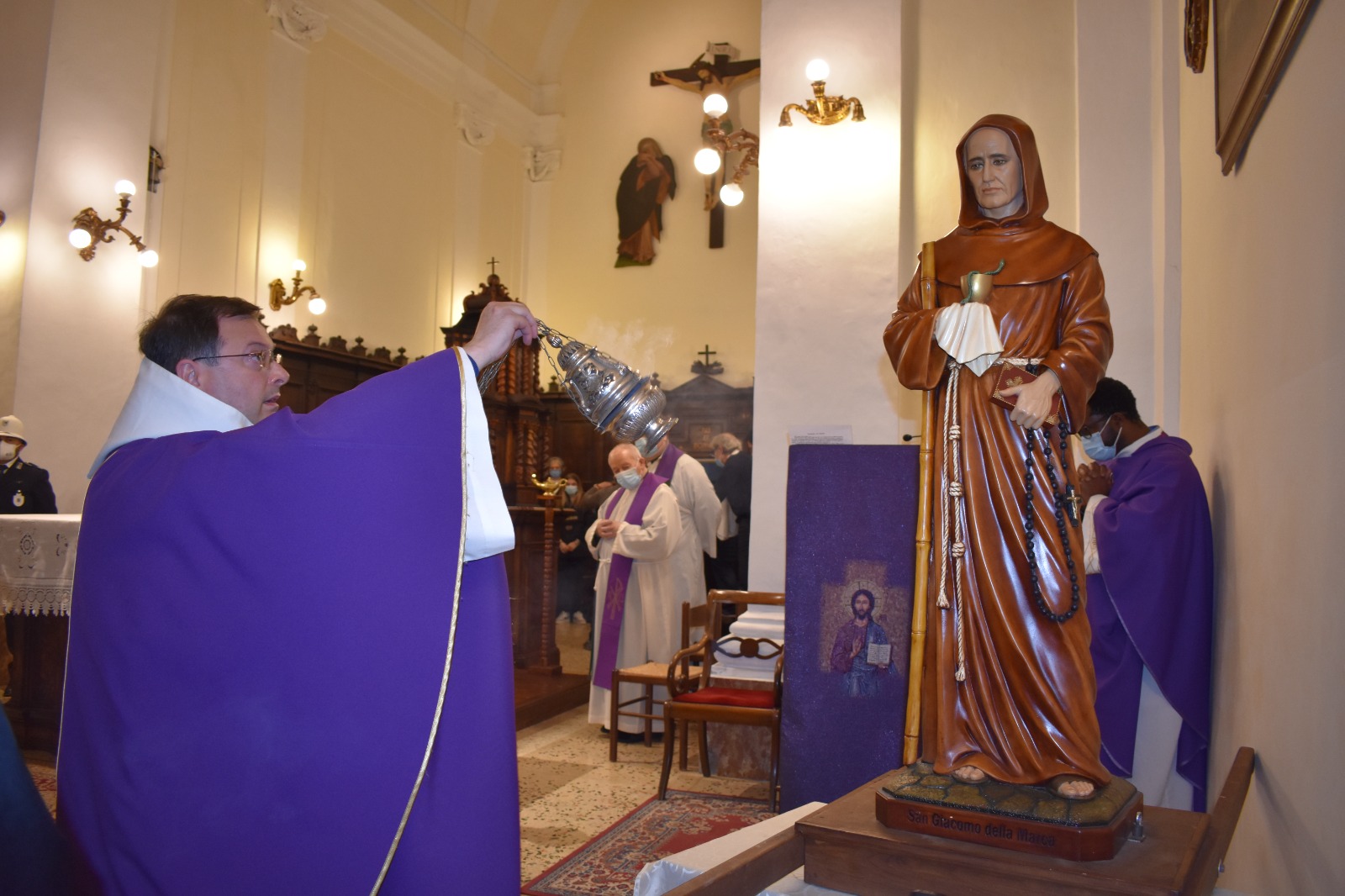In occasione della Festa del Patrono San Giacomo della Marca, questa mattina, domenica 28 novembre presso il Santuario di San Giacomo a Monteprandone è stata celebrata la Messa Solenne in onore del Santo, presieduta da padre Simone Giampieri Ministro Provinciale della Provincia Picena San Giacomo della Marca dei Frati Minori, concelebrata da padre Michele Massaccio padre guardiano del Convento e da Don Vincent Ifeme parroco della Chiesa San Nicolò a Monteprandone.