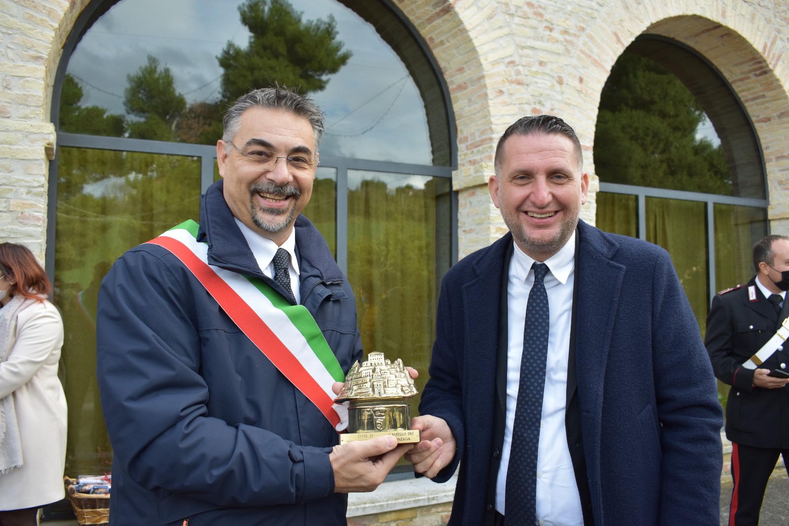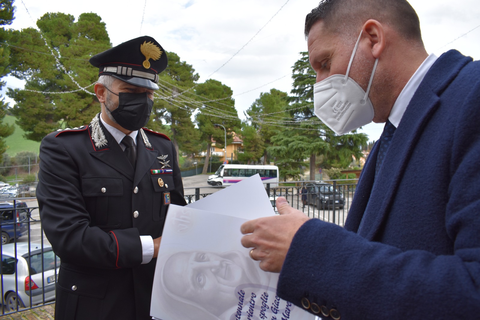 Dopo la Santa Messa il sindaco Loggi ha omaggiato le autorità presenti con un ritratto di San Giacomo, dipinto dall’artista monteprandonese Sabrina Spurio e realizzato dal Comune di Monteprandone in occasione del Ventennale del rientro delle spoglie del Santo da Napoli nelle sua terra natia.
