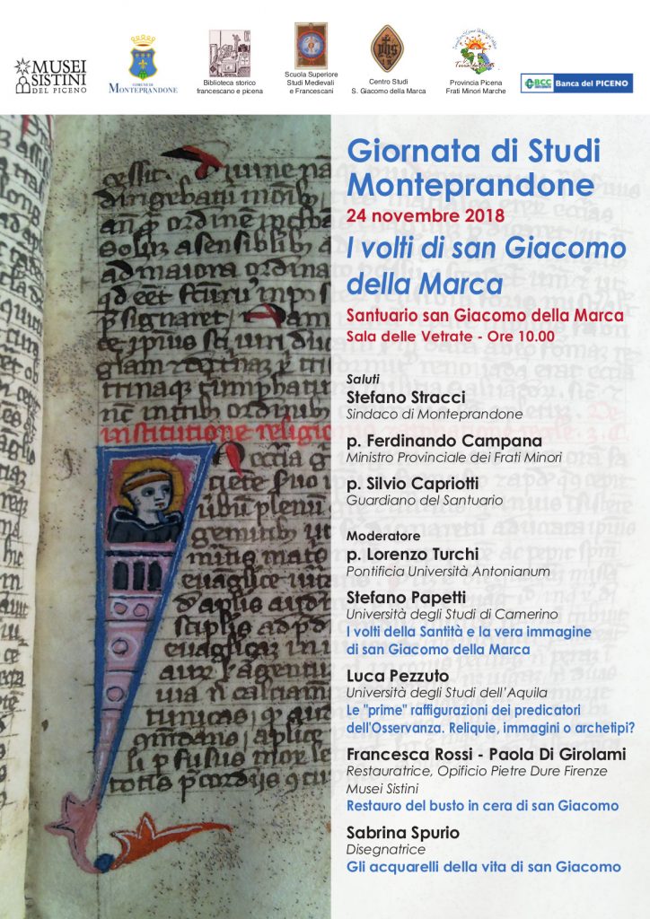 Seguiranno interventi di Stefano Papetti dell’Università degli Studi di Camerino su “I volti della Santità e la vera immagine di san Giacomo della Marca”, di Luca Pezzuto dell’Università degli Studi dell’Aquila su “Le prime raffigurazioni dei predicatori dell'Osservanza. Reliquie, immagini o archetipi?”, della restauratrice dell’Opificio Pietre Dure di Firenze Francesca Rossi e della Direttrice dei Musei Sistini Piceno Paola Di Girolami sul “Restauro del busto in cera di san Giacomo” e della disegnatrice Sabrina Spurio che ha realizzato “Gli acquarelli della vita di san Giacomo”