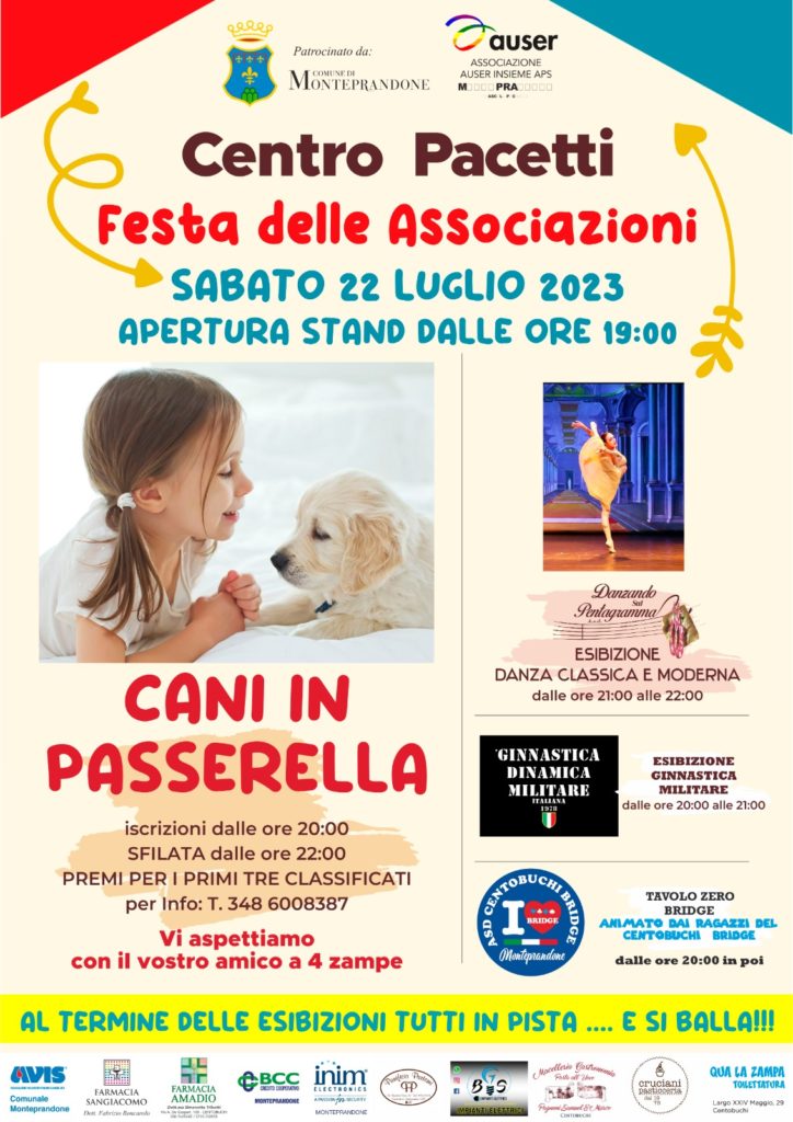 Si chiama “Festa delle Associazioni” ed è la manifestazione organizzata dall’Auser Insieme Aps Monteprandone, con il patrocinio del Comune, per animare la serata di sabato 22 luglio al Centro Pacetti di Centobuchi di Monteprandone.