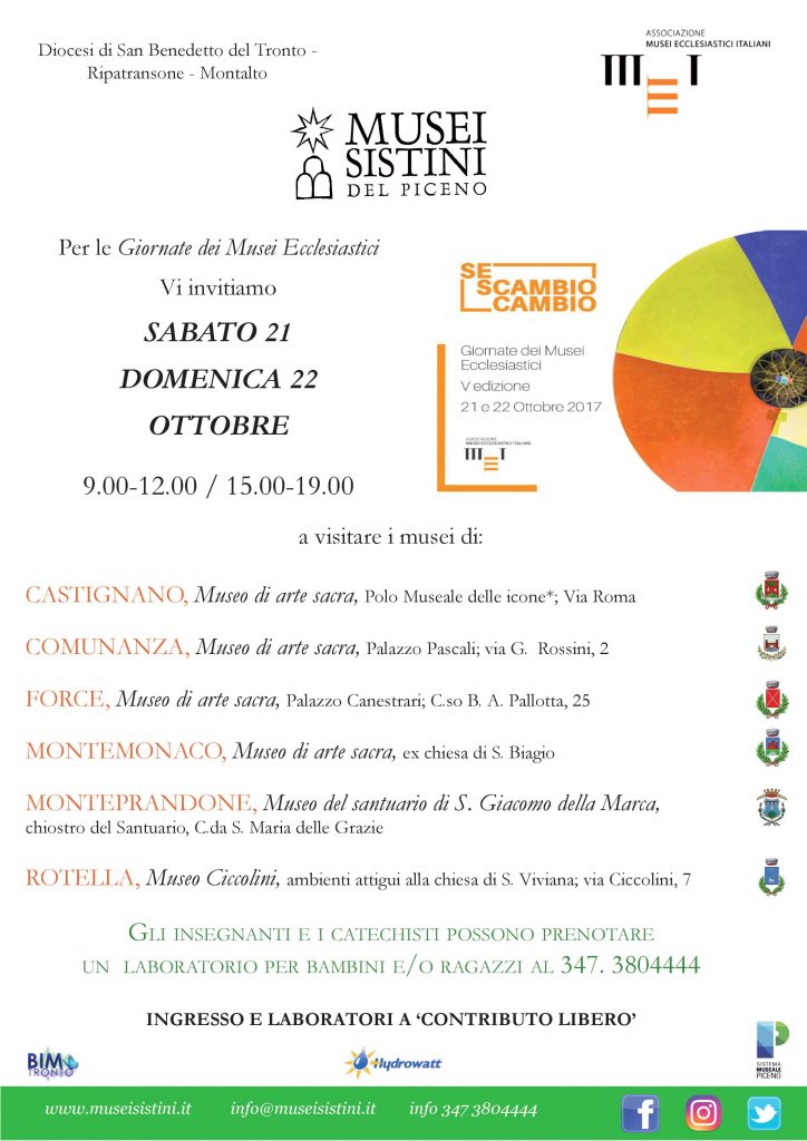 Anche il Museo del santuario di S. Giacomo della Marca situato nel chiostro del Santuario di Monteprandone, come tutti gli altri Musei Sistini del Piceno, aderisce alle Giornata dei Musei Ecclesiastici in programma sabato 21 e domenica 22 ottobre.