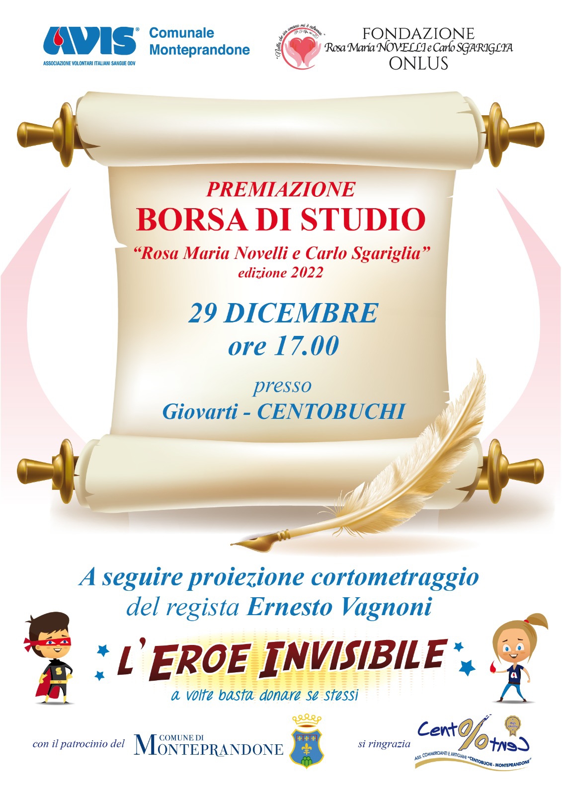 La premiazione è inserita negli eventi natalizi dell’Associazione cento per cento, e dopo la premiazione dei ragazzi, verrà proiettato il cortometraggio “l’eroe invisibile” del regista Ernesto Vagnoni con tre “spettacoli” alle 18:30, alle 19:30 e alle 21:30.