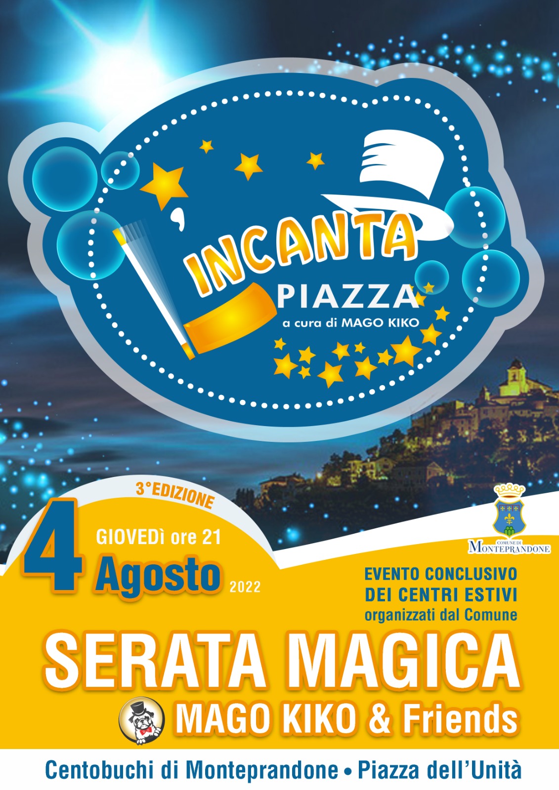Per il terzo anno consecutivo piazza dell’Unità a Centobuchi, come per magia, si trasforma ne “L’incantaPiazza”, kermesse per bambini e ragazzi curata dal Mago Kiko e animata dai migliori maghi del centro Italia.