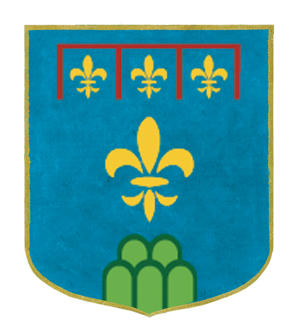 Quest’ultimo è un segno araldico molto particolare dell’Italia medioevale, il “capo d’Angiò”. È il principale segno della frazione guelfa, adottato da famiglie e comuni, composto da tre gigli situati tra i “denti” di una figura geometrica detta rastrello o lambello, ad indicare che i colli erano fortificati.