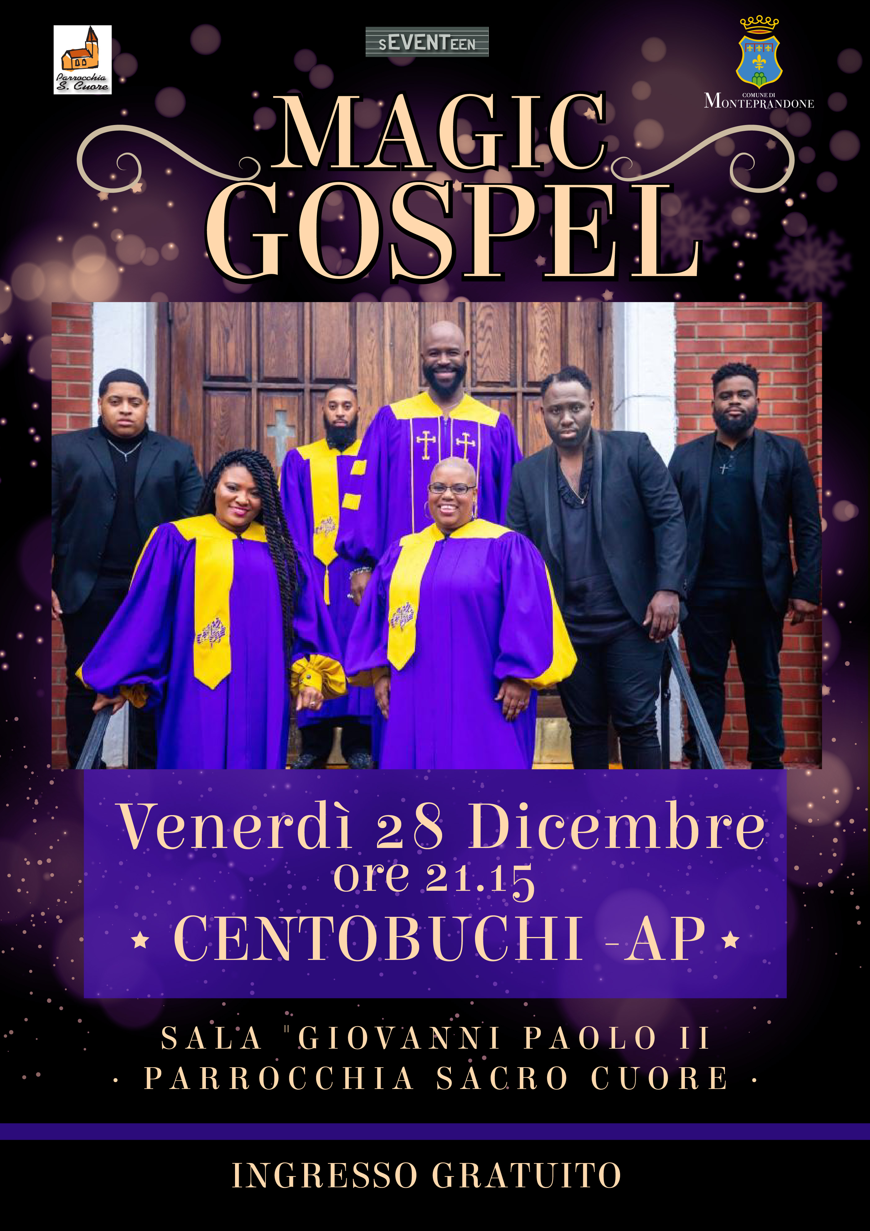 Il concerto, organizzato dalla Seventeen eventi in collaborazione con il Comune di Monteprandone e la parrocchia Sacro Cuore, è ad ingresso gratuito e avrà inizio alle ore 21:15. Per informazioni: www.seventeeneventi.it; telefono 3398207220; pagina Facebook: Seventeen eventi.