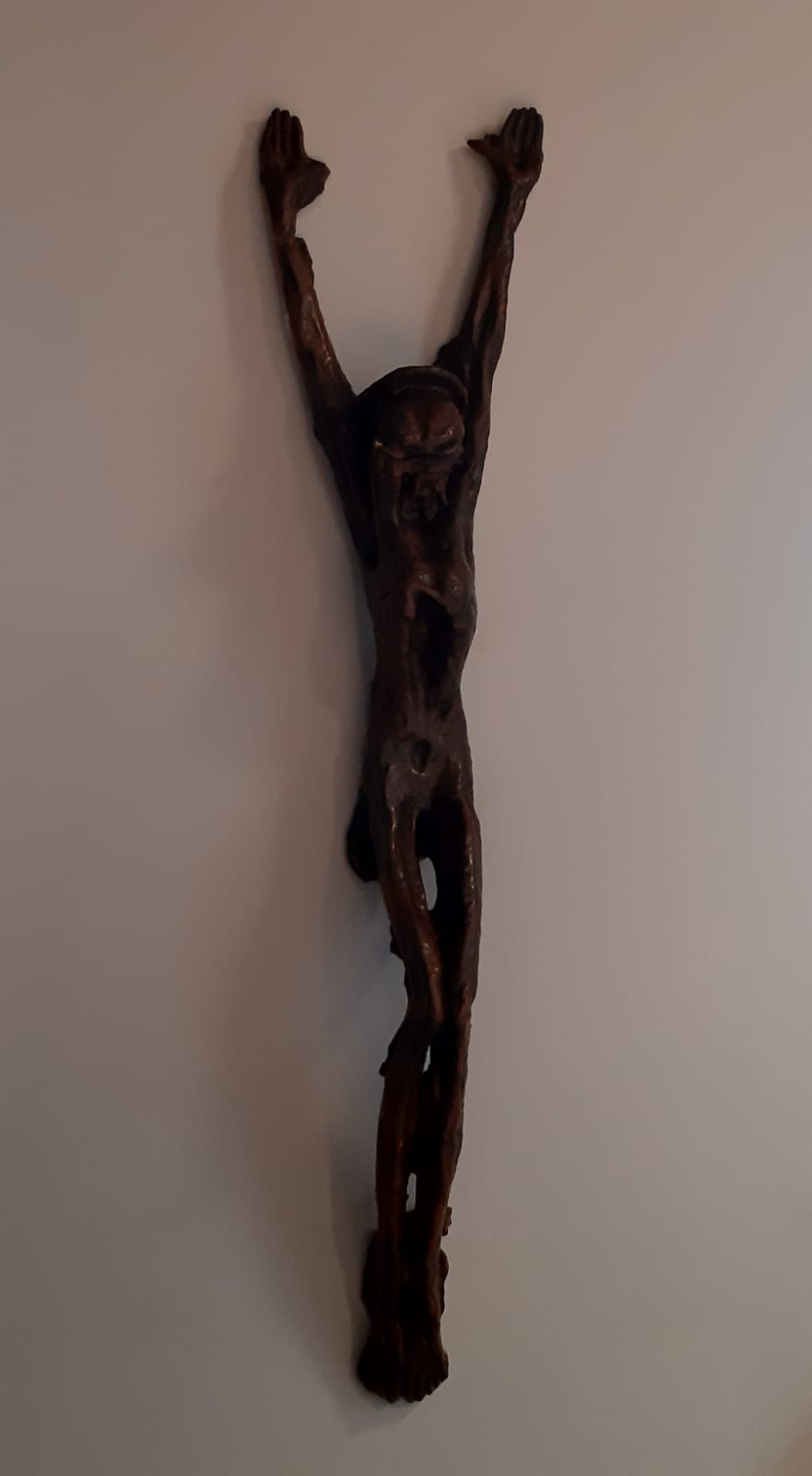 La scultura è un crocefisso in terracotta realizzato nel 1968 delle dimensioni di 176x40 cm. Come tutte le opere di Marinucci anche questa si distingue per la sua originalità, per le forme sinuose create dalla poliedrica arte del maestro e per la patinatura su terracotta.