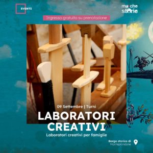 Nel pomeriggio di sabato 9 settembre, in piazza dell’Aquila, si terranno due laboratori creativi per famiglie. Uno è il laboratorio di falegnameria medievale che offrirà ai bambini ed alle bambine la possibilità di costruire, con tecniche semplici e sicure, oggetti in legno come spade, scudi, asce. Sotto lo sguardo vigile del falegname presente i bambini potranno usare morsetti, seghe, chiodi e martelli e capire come trasformare un semplice pezzo di legno in un oggetto finito. Il laboratorio è tenuto da Daniele Cannella, musicista, educatore e falegname. Sono previsti tre turni ore 16, ore 17 e ore 18. Evento gratuito su prenotazione al link