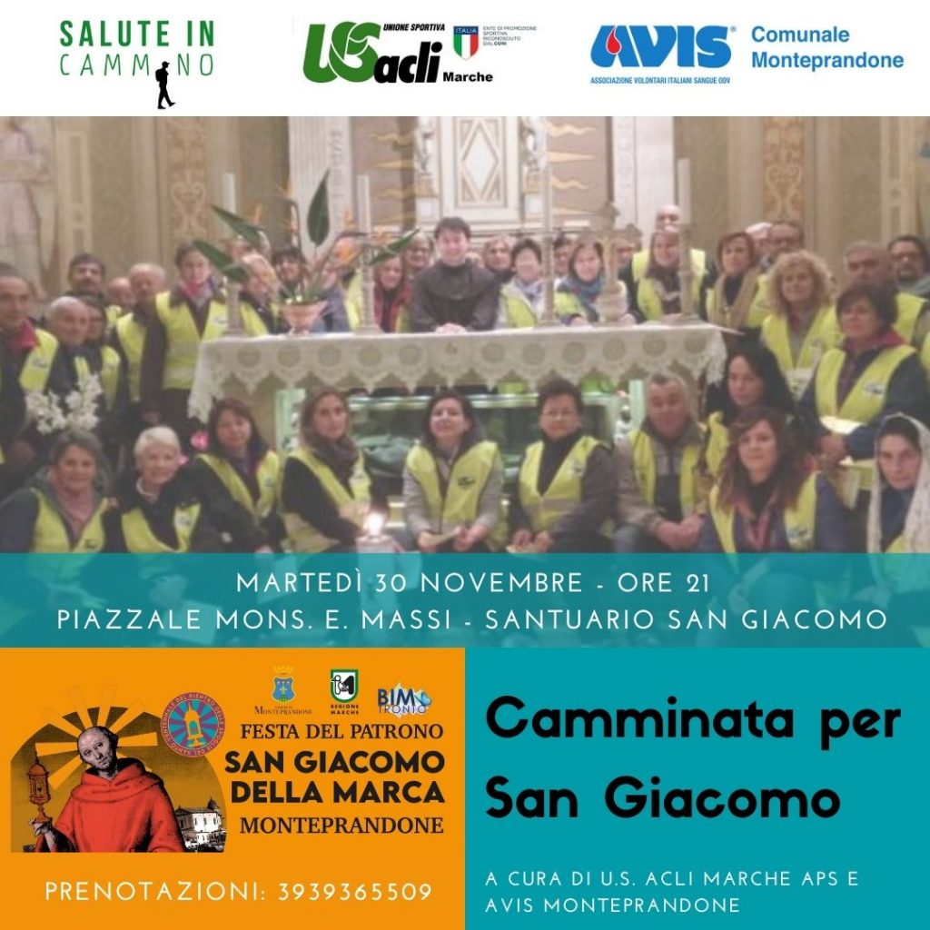 Il programma dell’iniziativa prevede la partenza di podisti alle 21 dal Piazzale Mons. Massi (Santuario di San Giacomo della Marca) e poi l’arrivo a Monteprandone davanti alla casa natale del patrono. Il gruppo, poi, tornerà sul punto di partenza.