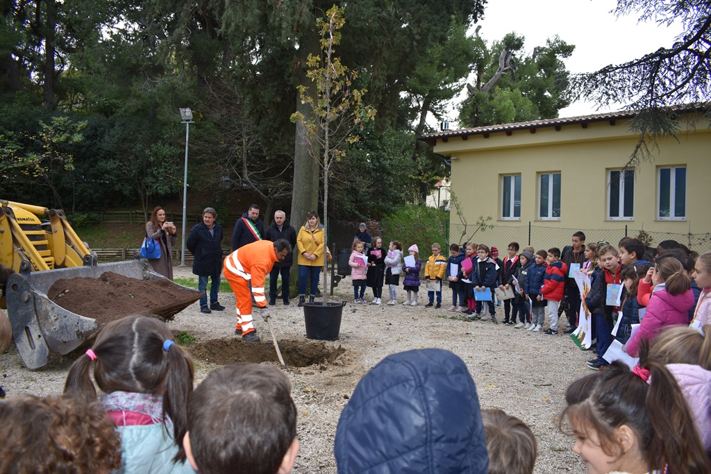 Di fronte al sindaco Sergio Loggi, all’assessore al verde pubblico Fernando Gabrielli, ai consiglieri Sergio Calvaresi delegato alle politiche ambientali e Martina Censori delegato alle politiche giovanili, alla presidente di Legambiente Marche Francesca Pulcini, i 76 bambini della scuola “Borgo da Monte”, accompagnati dalle insegnati, hanno intonato una canzone dedicata agli alberi.