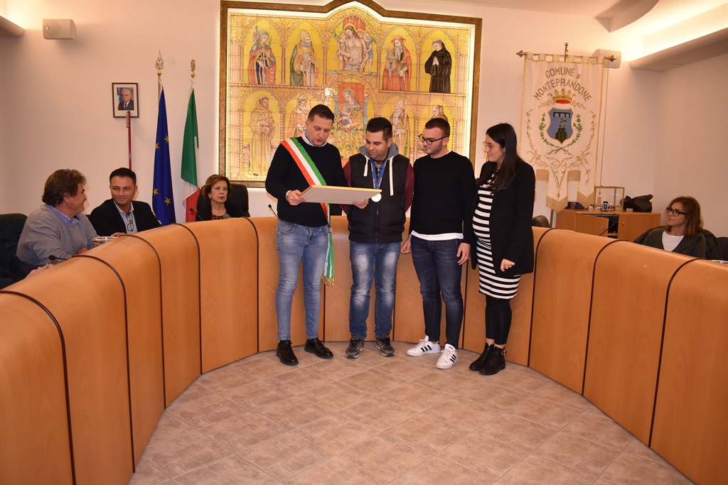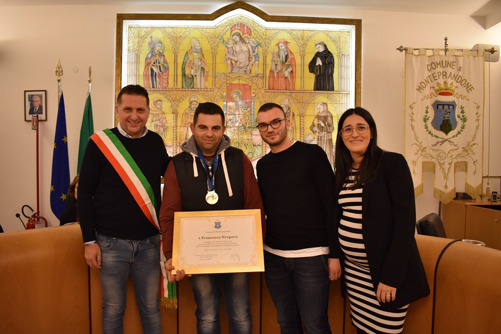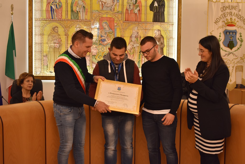 “Non è il primo riconoscimento che il Comune consegna a Francesco – ha dichiarato il Sindaco - e siamo certi non sarà l’ultimo. Grazie per aver dato lustro alla nostra Monteprandone con i tuoi successi. Ringrazio anche a Massimo Fabbrizi all’altro nostro campione che ha sempre creduto e contribuito alla formazione di Francesco”.