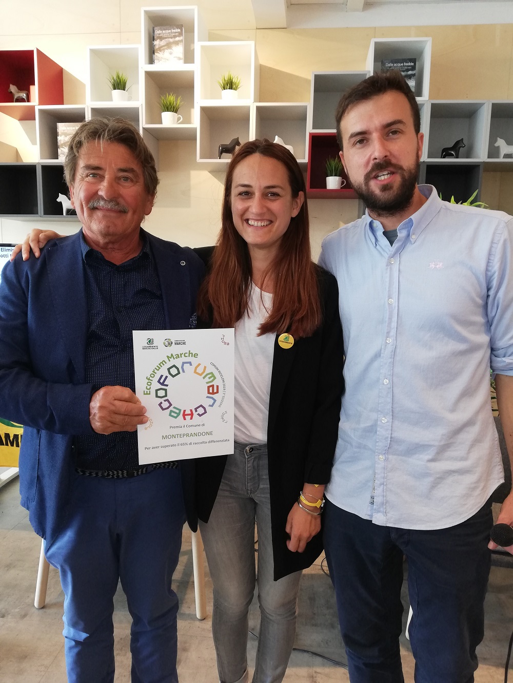 E proprio l'assessore Fernando Gabrielli ha ricevuto dalle mani della presidente di Legambiente Marche Francesca Pulcini l'attestato di "Comune Riciclone 2019".