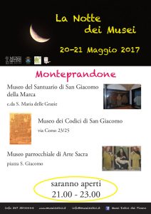 In occasione del “Gran Tour Musei”, iniziativa promossa dalla Regione Marche, dal coordinamento Marche di ICOM Italia in collaborazione con il Ministero dei Beni e le Attività culturali e del Turismo, a Monteprandone si terrà la “Notte dei Musei” ovvero l’apertura straordinaria di tutti i musei presenti sul territorio comunale.