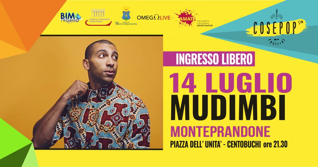 Il secondo appuntamento di Cose Pop 2018, in programma sabato 14 luglio, vedrà salire sul palco di piazza dell’Unità, unico concerto nel Piceno, il rapper Mudimbi, al secolo Michel Mudimbi, nato a San Benedetto del Tronto 31 anni fa, da qualche anno residente a Monteprandone.