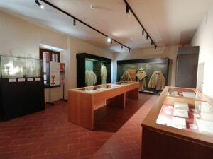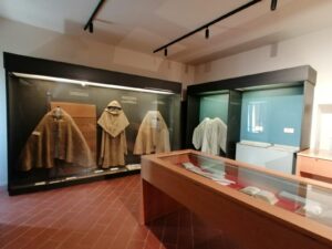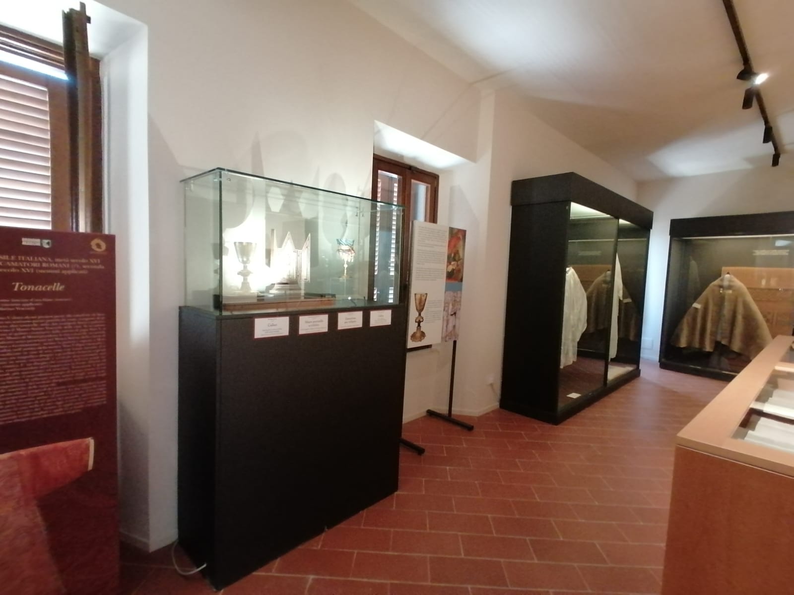 Queste tonacelle sono presenti lì perché da quando il Museo Sistino di Montalto delle Marche è terremotato, nel 2016/2017, i beni donati dal Papa Sisto V sono stati distribuiti nei Musei Sistini, affinché questo patrimonio fosse comunque visibile e fruibile a tutti.