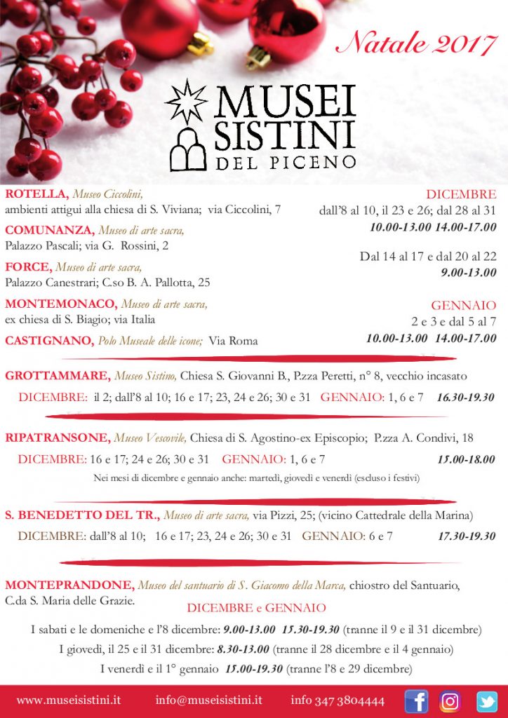 Per informazioni www.museisistini.it; info@museisistini.it; telefono 3473804444; social FB - Musei Sistini del Piceno, Instagram - Musei Sistini, Twitter - @museisistini