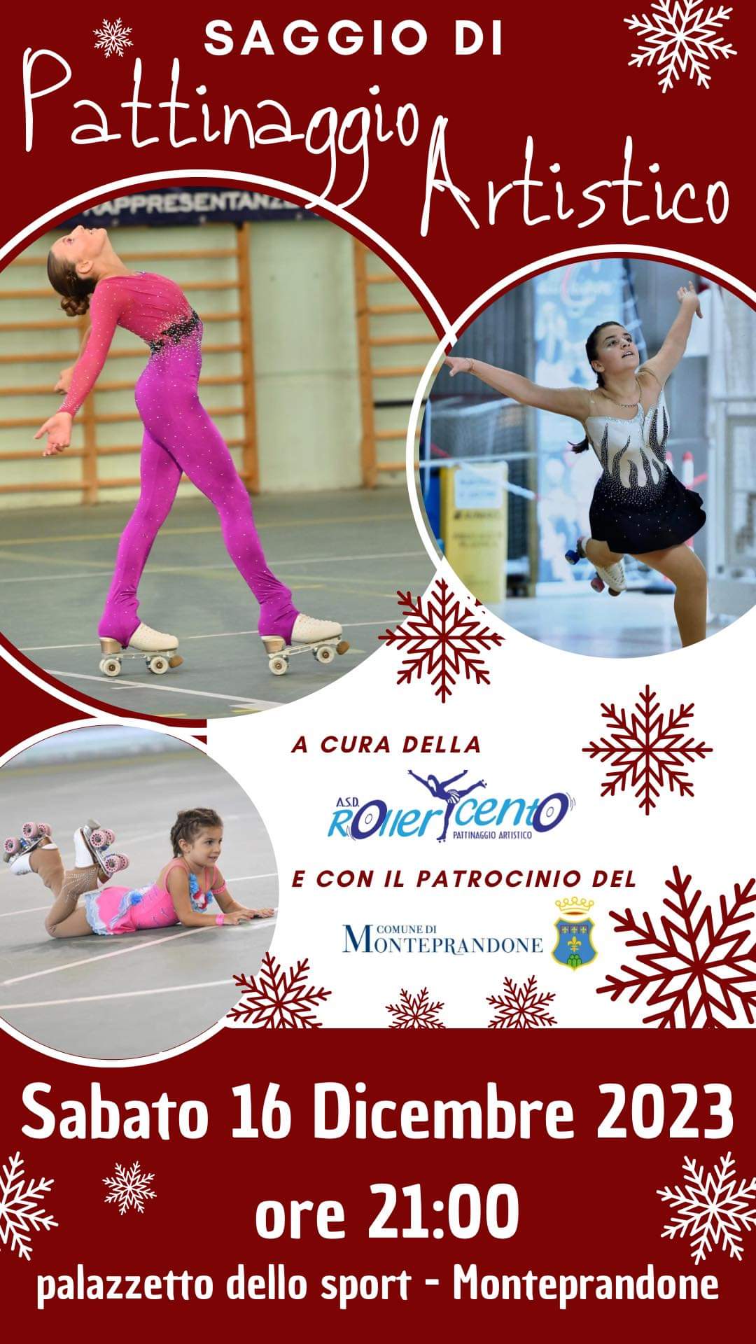 Si chiama “Natale sui pattini” ed è il saggio natalizio proposto dall’associazione di pattinaggio artistico Roller Cento in programma sabato 16 dicembre, al palazzetto dello Sport di Monteprandone.