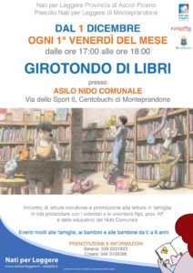 A partire dal 1° dicembre, ogni primo venerdì del mese, dalle 17 alle 18, gli spazi del nido ospiteranno “Girotondo di libri”, incontro di letture condivise e promozione della lettura in famiglia in età prescolare.