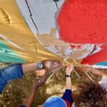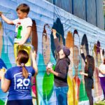 Il lungo murale realizzato al Parco della Conoscenza di Centobuchi è un’opera di arte partecipata, un processo creativo che ha coinvolto oltre 150 cittadini della comunità di Monteprandone e Centobuchi.