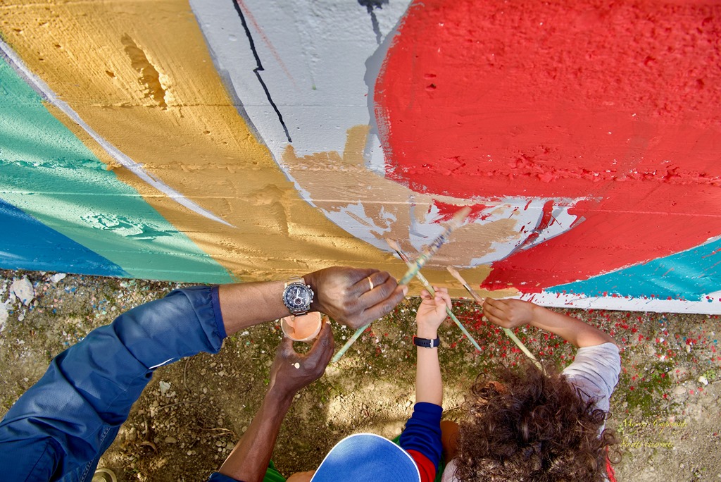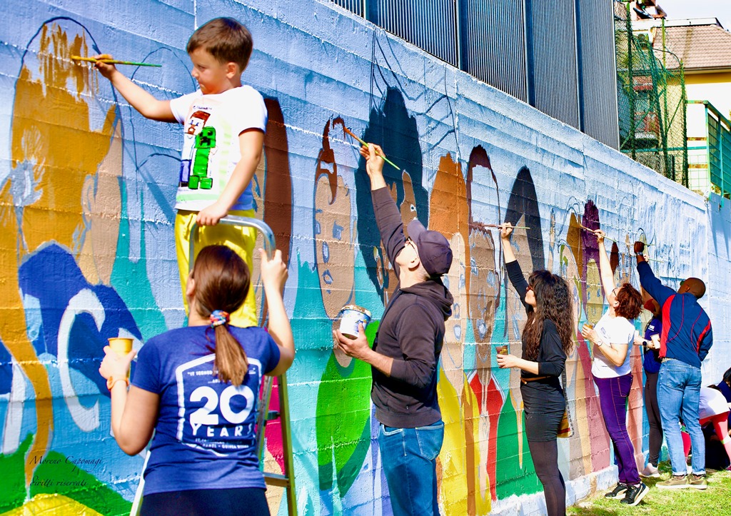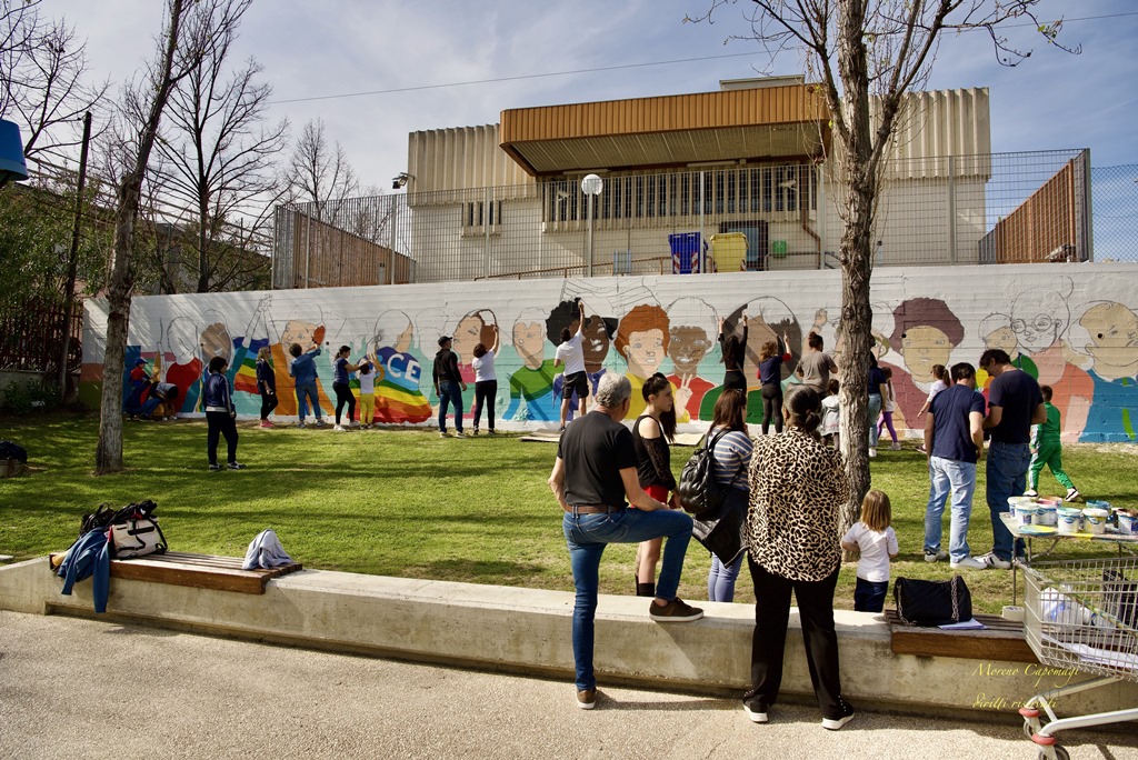 L’opera, infatti, è stata realizzata da bambini ed adulti, da anziani e disabili di diverse etnie e culture che, per oltre una settimana, mattina e pomeriggio, armati di pennelli hanno creato l’opera pubblica, lunga oltre cento metri.