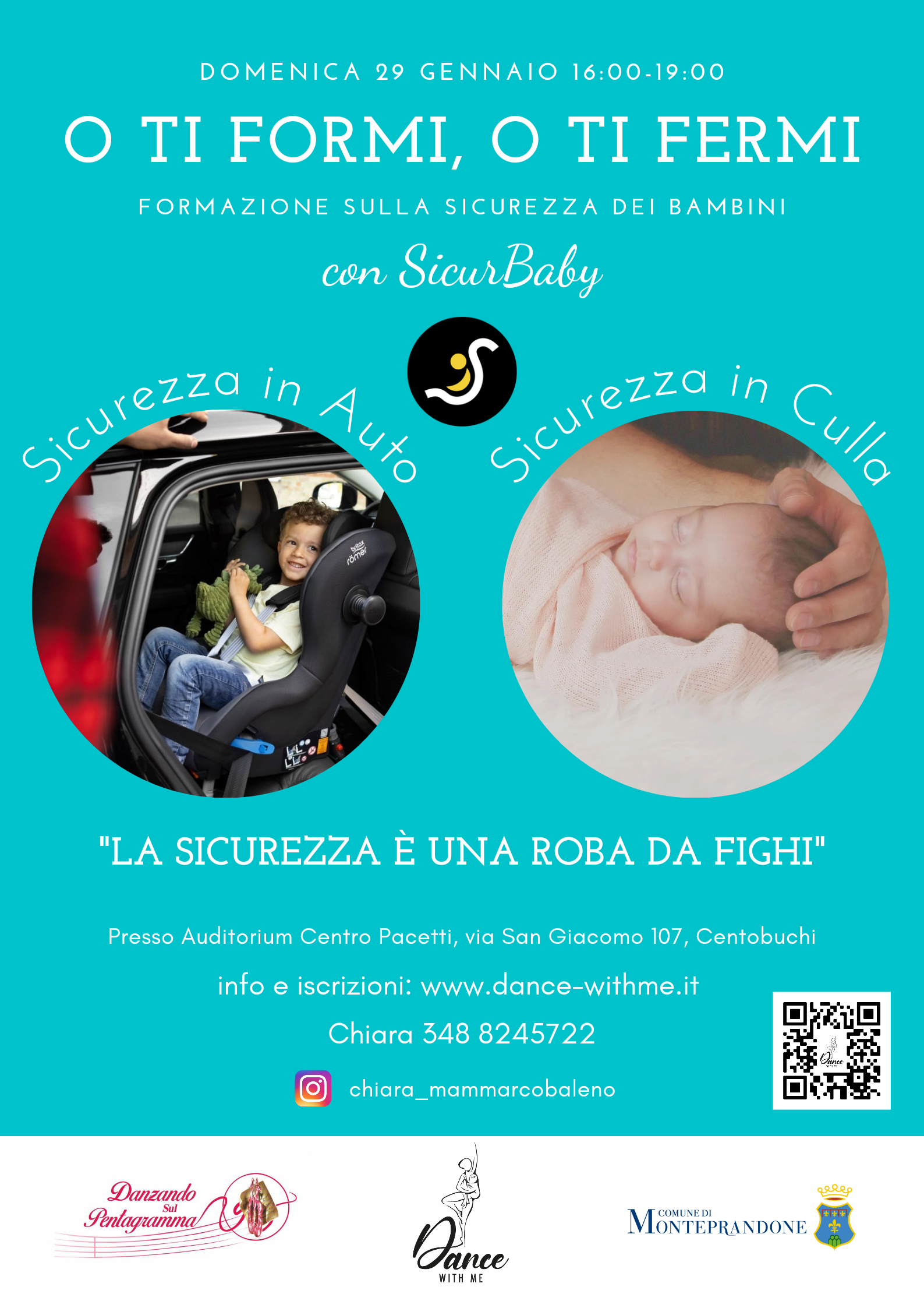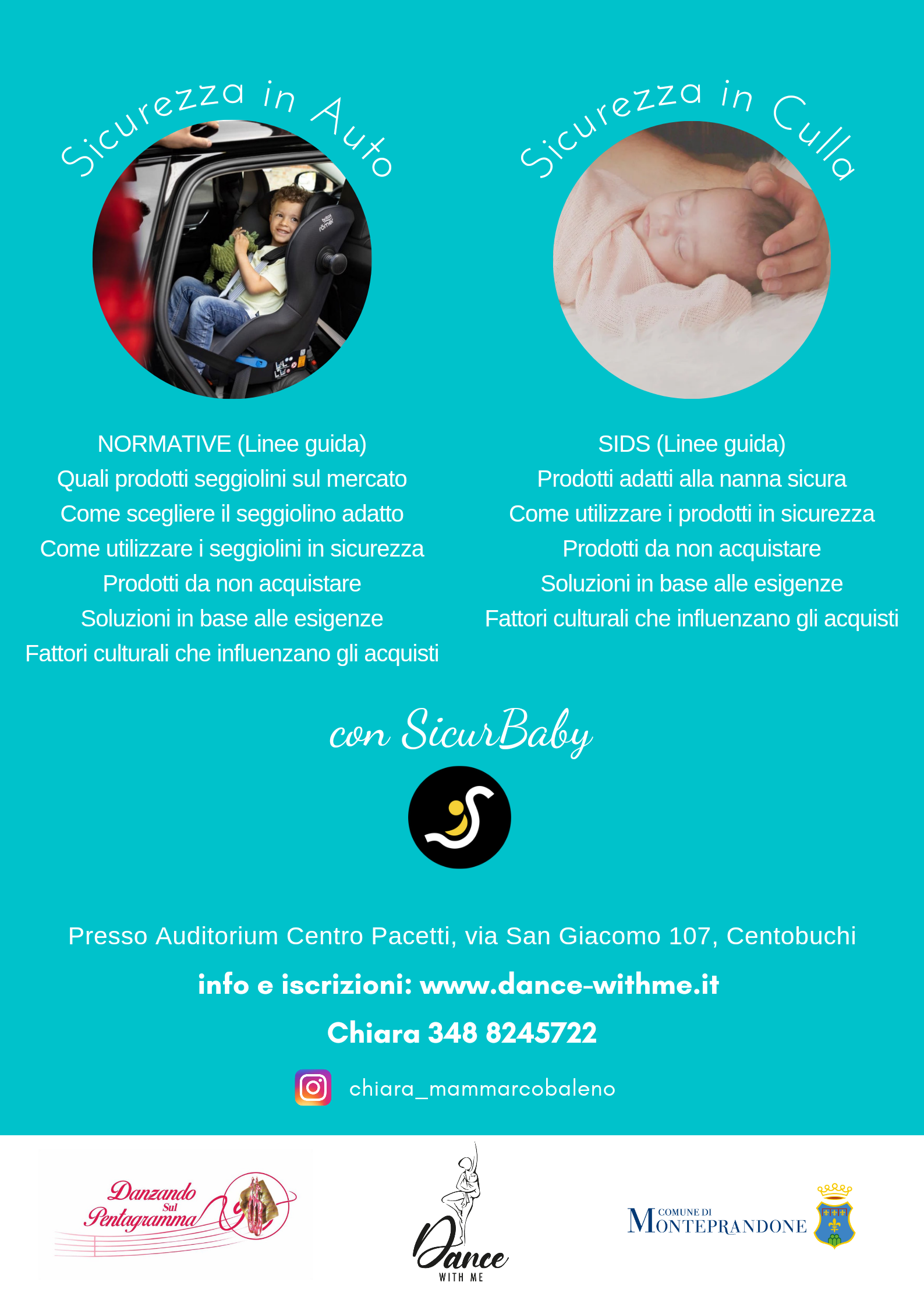 Il corso organizzato da Dance with me, in collaborazione con la Asd Danzando sul Pentagramma, con il patrocinio del Comune di Monteprandone, è tenuto da SicurBaby, azienda con i maggiori esperti in Italia di sicurezza dei bambini in auto e in culla.