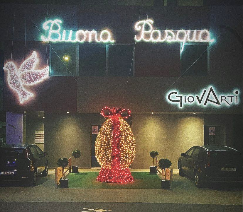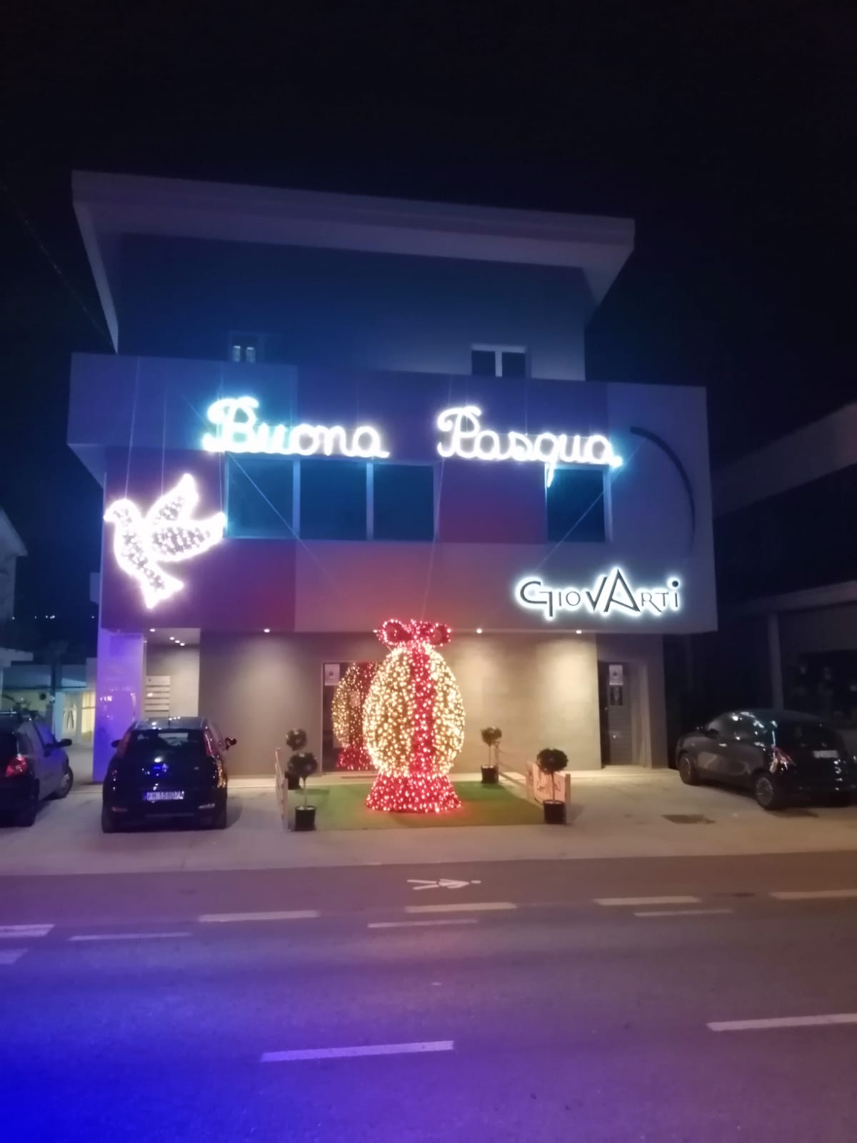Per la prima volta sono state allestite luminarie artistiche pasquali su tutto il territorio all’ingresso del Borgo Storico a Monteprandone, al Parco dell’Amicizia di via della Liberazione, al Cento GiovArti in viale De Gasperi e al Centro commerciale Nidir di Largo XXIV Maggio a Centobuchi.