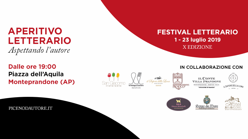 Ricordiamo che il festival letterario Piceno d’Autore è organizzato dal Comune di Monteprandone, dall'associazione "I Luoghi della Scrittura", dalla libreria “La Bibliofila”, con il patrocinio e il contributo di Regione Marche e BIM - Bacino Imbrifero Montano del Tronto, con il patrocinio della Provincia di Ascoli Piceno, dell’Ordine dei Giornalisti delle Marche dell’Associazione librai italiani (Ali), con il sostegno delle aziende private GLS-Picena Express, Teknonet, Genny, Teng Arredamenti, Inim Electronics, Farmacia Comunale Monteprandone, TMT, Ediltres, Giobbi srl che hanno aderito all’ArtBonus, un credito d'imposta per le erogazioni liberali in denaro a sostegno della cultura e dello spettacolo.