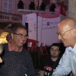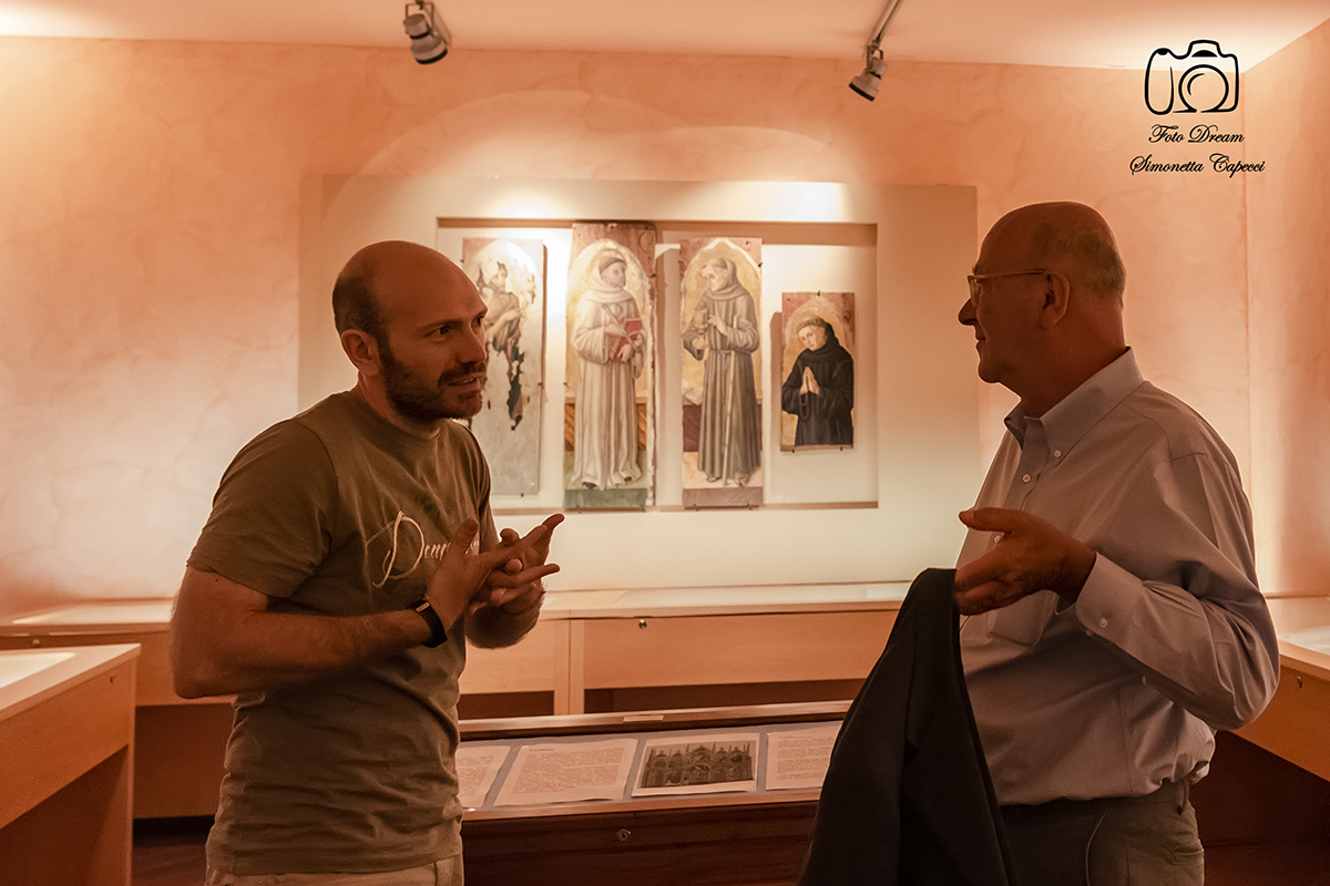 Visitando il Centro Storico insieme a Mimmo Minuto e Silvio Venieri dell’associazione “I luoghi della scrittura” e accolto dalla presidente del Consiglio comunale Roberta Iozzi, prima dell’inizio della serata, Sergio Rizzo è rimasto molto colpito dai tesori custoditi nel Museo dei Codici di San Giacomo della Marca, dove si trova anche il “Polittico di Monteprandone” di Vittore Crivelli.