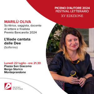 Si partirà lunedì 22 luglio con la scrittrice, saggista e docente di lettere Marilù Oliva. L’autrice presenta il volume “L’Iliade cantata dalle Dee” (ed. Solferino). Riportando in vita l’Iliade come un coro di voci femminili, Marilù Oliva ribalta la prospettiva sulla più maschile delle vicende, la guerra, riappropriandosene a nome di tutte: delle troppe vinte, umiliate, violate, ma anche delle poche vincitrici apparenti, destinate ad afferrare trionfi effimeri come la vendetta. Un’epica potente, commovente, palpitante: indimenticabile. Il volume è nella sestina del premio Bancarella 2024, il cui vincitore verrà svelato questa domenica 21 luglio, a Pontremoli. A dialogare con la Oliva sarà Giovanna Frastalli.