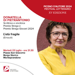 Martedì 23 luglio, ospite della kermesse culturale sarà la scrittrice abruzzese Donatella Di Pietrantonio. Vincitrice dei Premi Strega e Strega Giovani 2024, l’autrice de “L’Arminuta” (vincitore Premio Campiello 2017) e “Borgo Sud” (finalista Premio Strega 2021) presenta il suo romanzo “L’età fragile”, edito da Einaudi: un’intensa storia di dolore, legami familiari e parole non dette. Dialoga con l’autrice, lo scrittore sambenedettese Fabio Bacà.