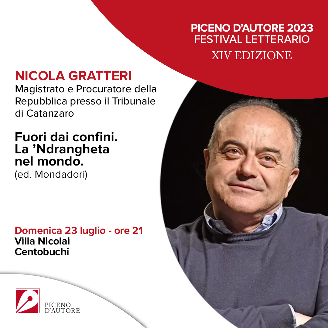 Ospite d’eccezione sarà il magistrato antimafia Nicola Gratteri, Procuratore della Repubblica presso il Tribunale di Catanzaro. Presenterà il libro “Fuori dai confini. La 'ndrangheta nel mondo” edito da “Mondadori” e sarà introdotto dal magistrato Ettore Picardi, Procuratore della Repubblica presso il Tribunale di Teramo.