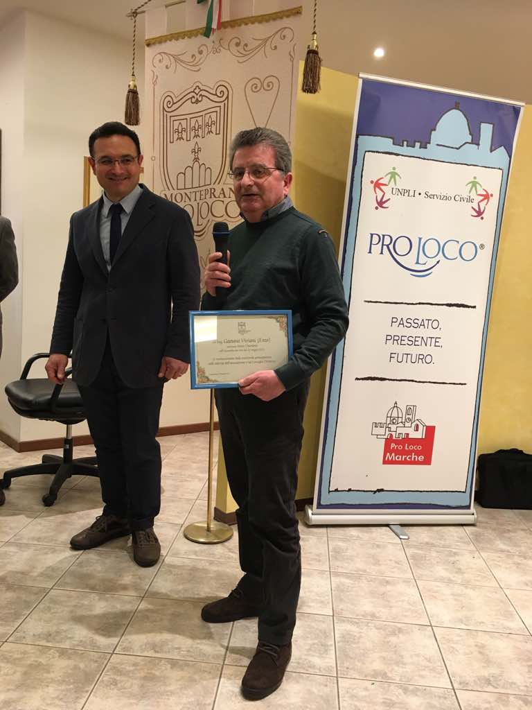 Contestualmente Bruno Giobbi, presidente della Pro loco di Monteprandone insieme a Borroni, ha consegnato un riconoscimento al socio onorario Gaetano Viviani per l’impegno profuso nell’associazione locale.