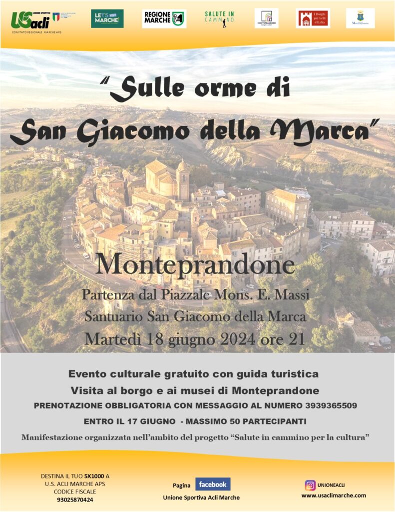 Primo appuntamento, martedì 18 giugno a Monteprandone, con il progetto “Salute in cammino per la cultura” e con l’iniziativa “Sulle orme di San Giacomo della Marca”.